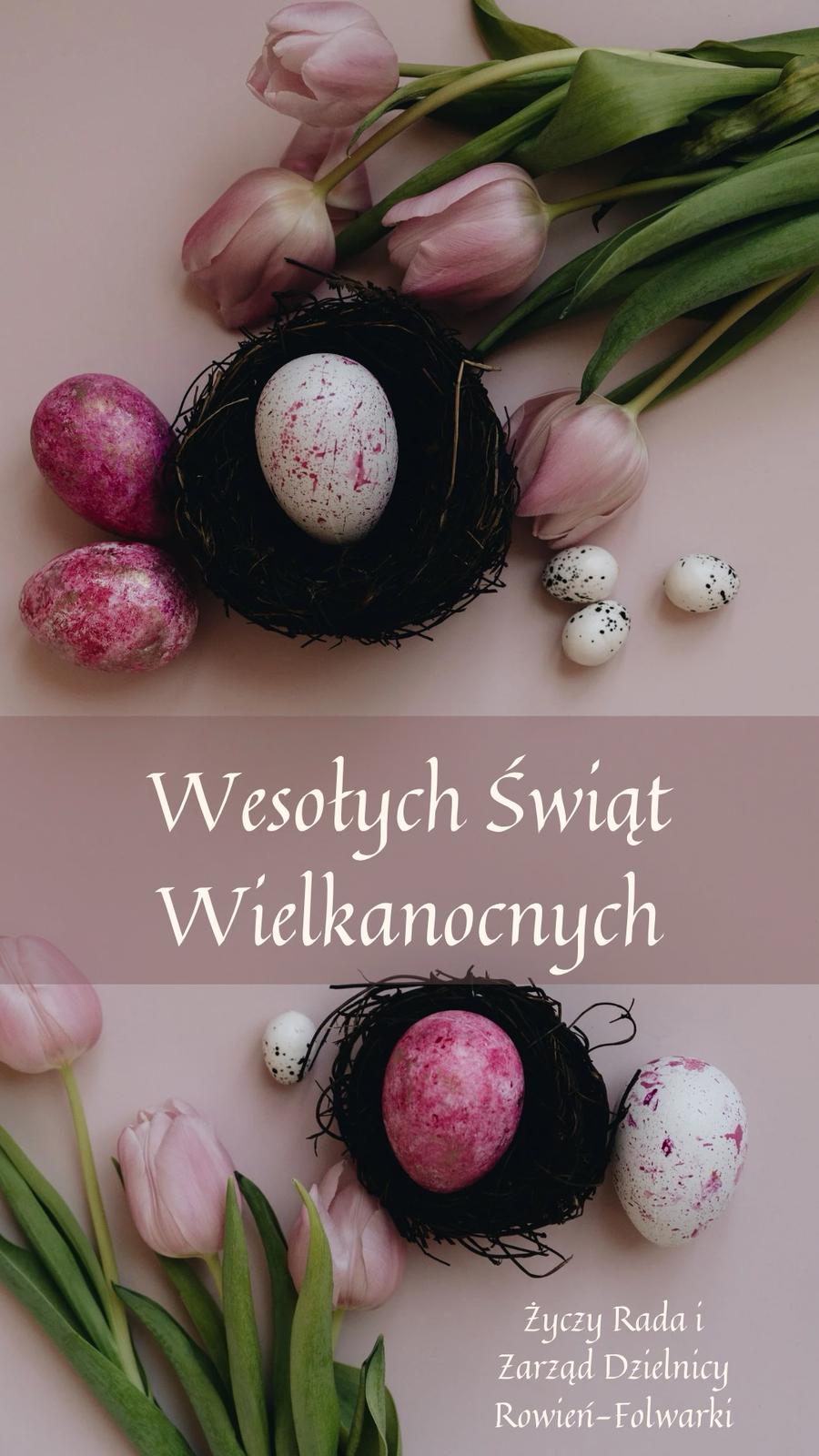 Z okazji Świąt Wielkanocnych życzymy Państwu zdrowia, spokoju i nadziei, które niesie ze sobą ten wyjątkowy czas. Niech nadchodzące dni będą pełne ciepła, rodzinnej atmosfery oraz odpoczynku od codziennych trosk. Rada i Zarząd Dzielnicy Rowień-Folwarki